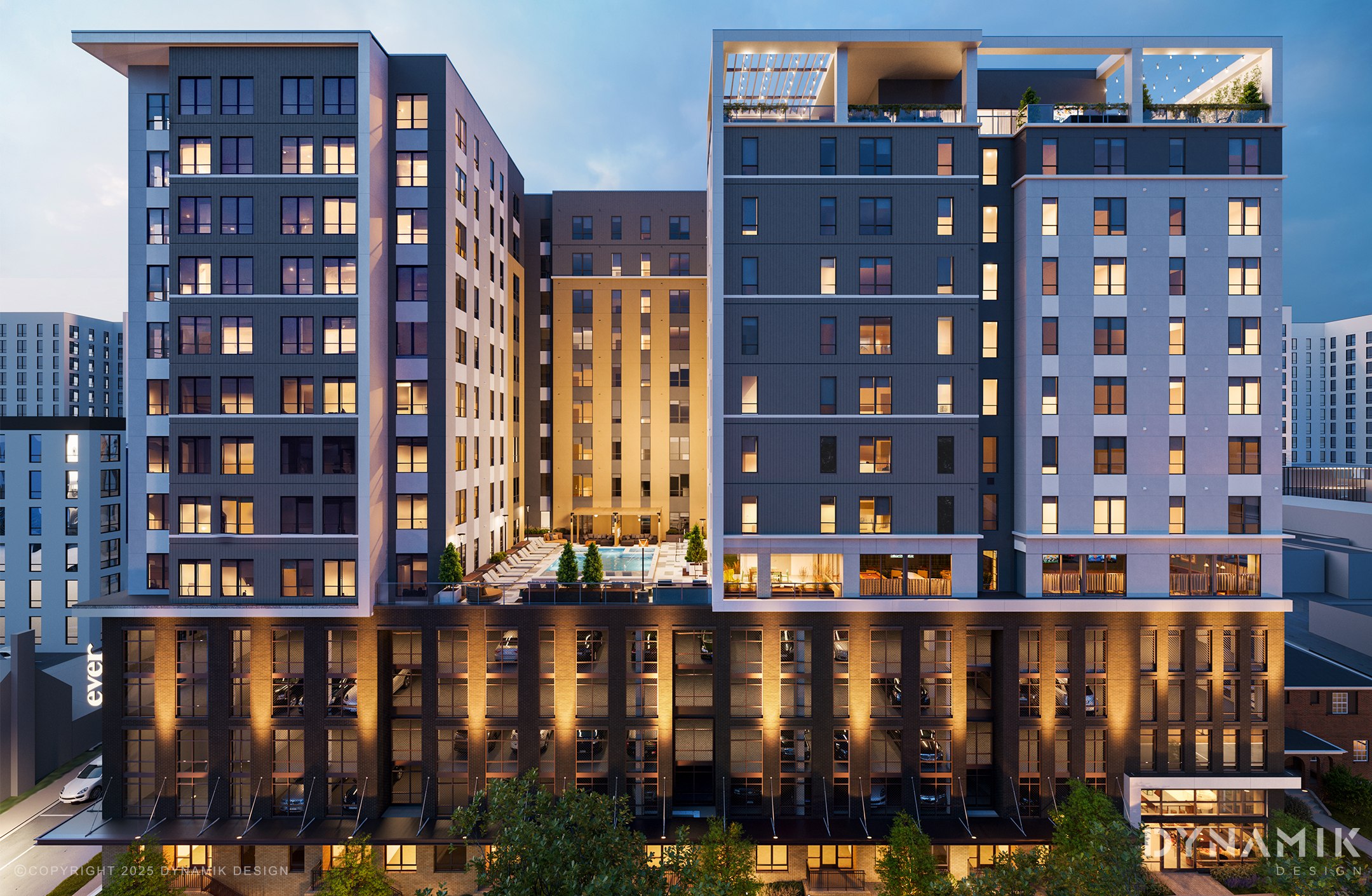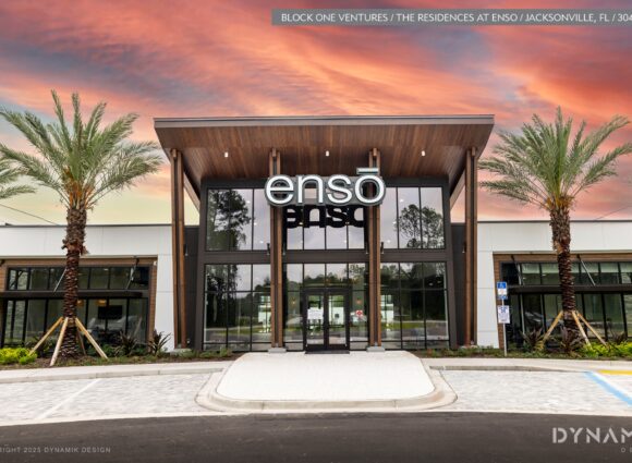 The Residences at Enso is a 31.4 acre development in Jacksonville, Florida. The first phase includes 304 residential units in five 4-story wood-framed Type VA buildings. The facility also includes a freestanding clubhouse, 24 garage bays with carriage units above and six stand-alone garage buildings. Residents will enjoy resort style amenities including a 7,000 SF clubhouse, luxury pool courtyard, landscaped amenity parks and walkable connectivity to the nearby shops and restaurants. Additional amenity space includes a fitness room, co-work areas, and a package / parcel room with access to a lavish pool courtyard. The entire development is master planned to create a walkable community destination that celebrates the natural coastal surroundings. Residents and visitors are invited to explore the plentiful outdoor seating and gathering areas, decorative water features, expansive public lawn for programming and activities, large winding pathways and a pedestrian nature bridge that spans the wetlands.
