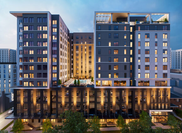 The Residences at Enso is a 31.4 acre development in Jacksonville, Florida. The first phase includes 304 residential units in five 4-story wood-framed Type VA buildings. The facility also includes a freestanding clubhouse, 24 garage bays with carriage units above and six stand-alone garage buildings. Residents will enjoy resort style amenities including a 7,000 SF clubhouse, luxury pool courtyard, landscaped amenity parks and walkable connectivity to the nearby shops and restaurants. Additional amenity space includes a fitness room, co-work areas, and a package / parcel room with access to a lavish pool courtyard. The entire development is master planned to create a walkable community destination that celebrates the natural coastal surroundings. Residents and visitors are invited to explore the plentiful outdoor seating and gathering areas, decorative water features, expansive public lawn for programming and activities, large winding pathways and a pedestrian nature bridge that spans the wetlands.